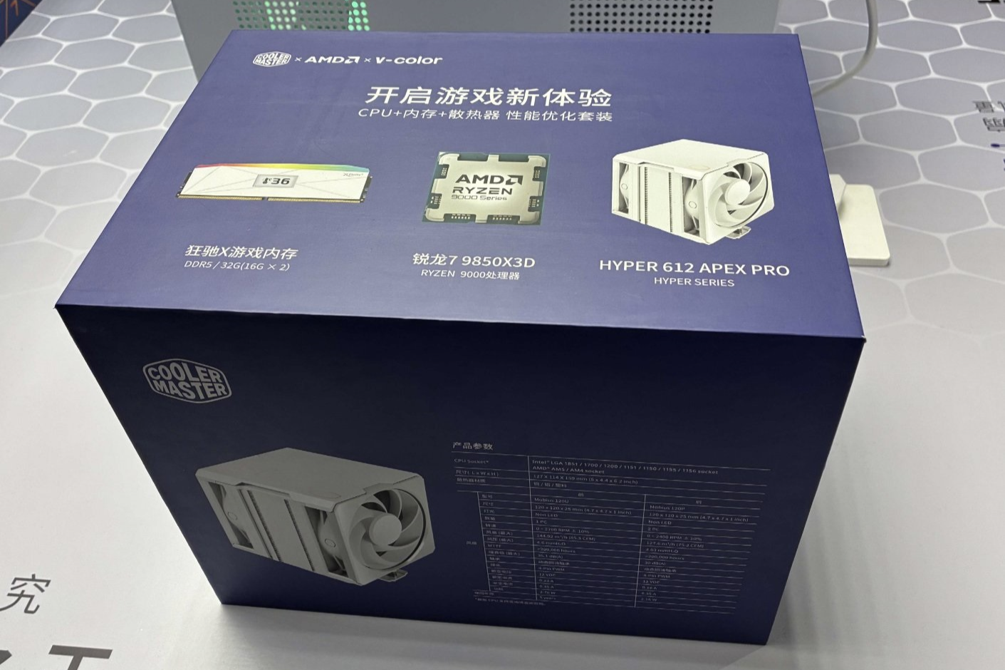 Spotted during a Cooler Master China showcase that also highlighted new PSUs, fans, and air coolers, the co branded box includes AMD Ryzen 7 9850X3D, Cooler Master Hyper 612 APEX Pro air cooler, and v-color Manta OLED XFinity Plus DDR5 memory. For builders, this is a clean one stop stack aimed directly at high performance gaming rigs, where CPU selection, RAM compatibility, and cooler capability can make or break the first build experience.