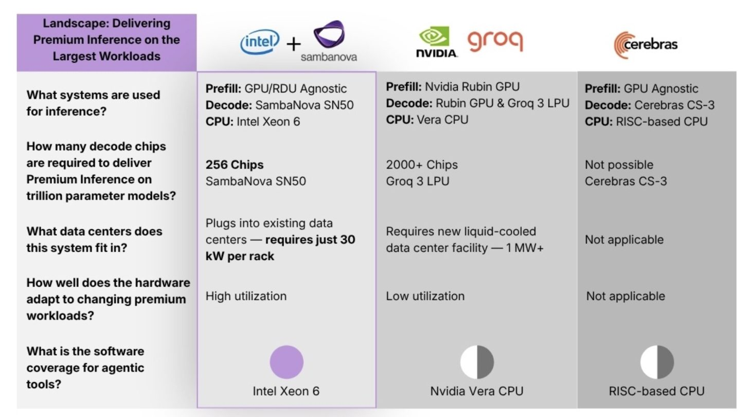There is also a practical business angle here. Unlike NVIDIA’s vertically integrated rack scale model, the Intel and SambaNova approach appears more modular. The partnership announcement does not lock customers into one specific GPU vendor for the prefill side, and the messaging around the blueprint focuses more on a flexible heterogeneous design than on an all in one proprietary platform. That gives the Intel and SambaNova pairing a potentially attractive position for operators who want disaggregated inference without buying into a single tightly controlled infrastructure stack. This is an inference based on the official architecture description and the absence of a single mandated GPU path in the announcement.